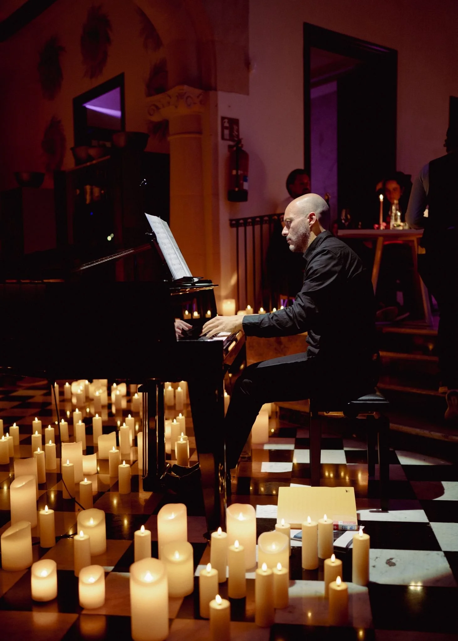 One week, a live jazz band fills the room with warm brass and soft percussion, conversations drifting gently between notes. The next, the lights dim and the space transforms into a candlelit piano session, where every key feels closer, more intimate.
